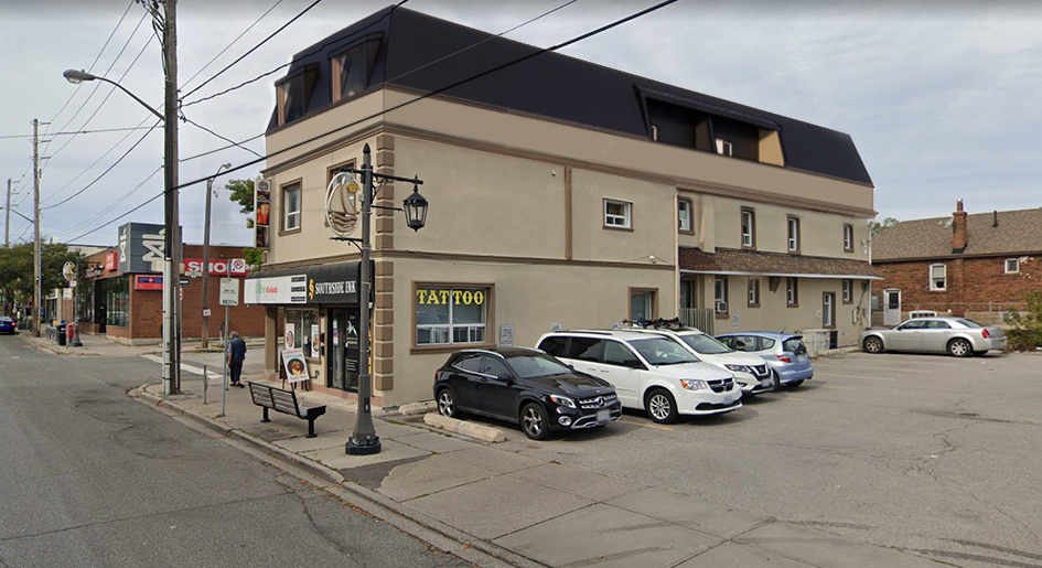 A third floor suite of units were added to this existing two-storey commercial-residential building in Toronto. Four studio units utilize a tight corner lot to achieve space and lighting requirements.